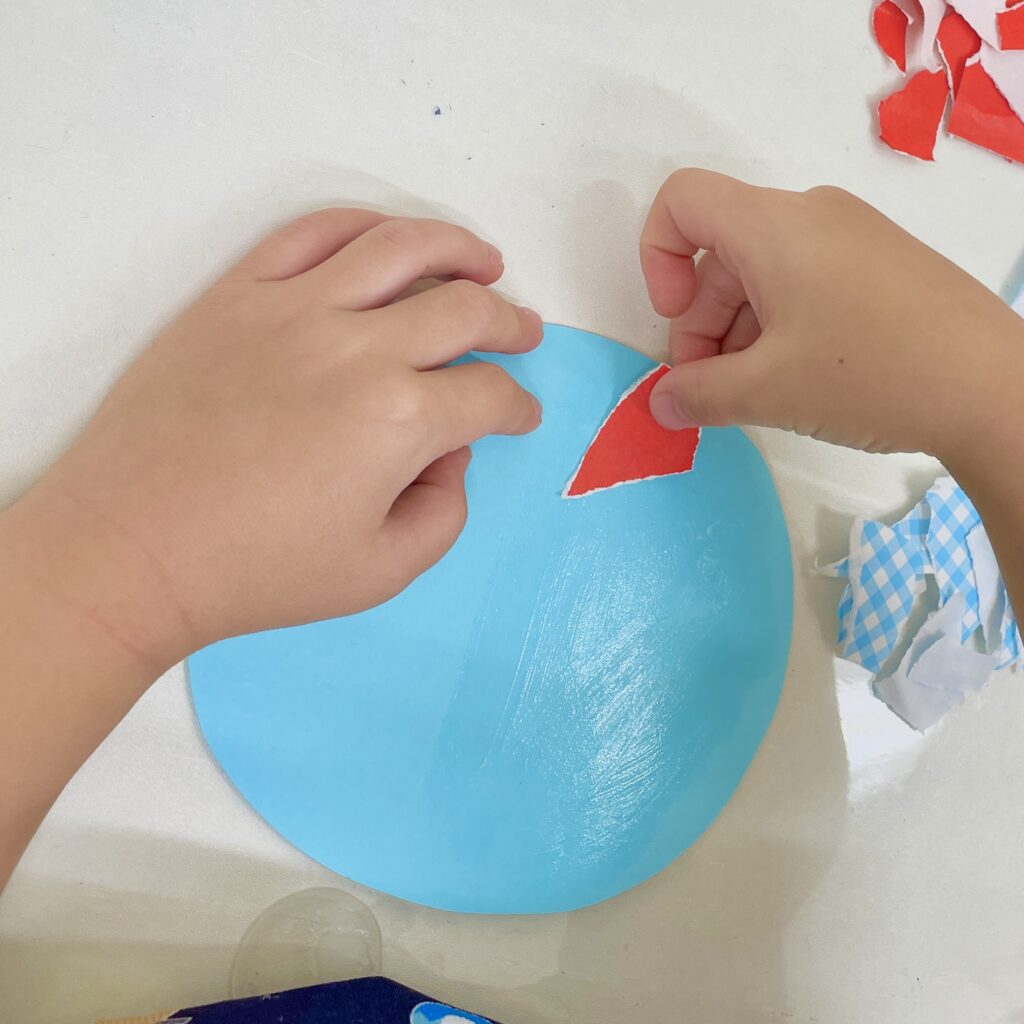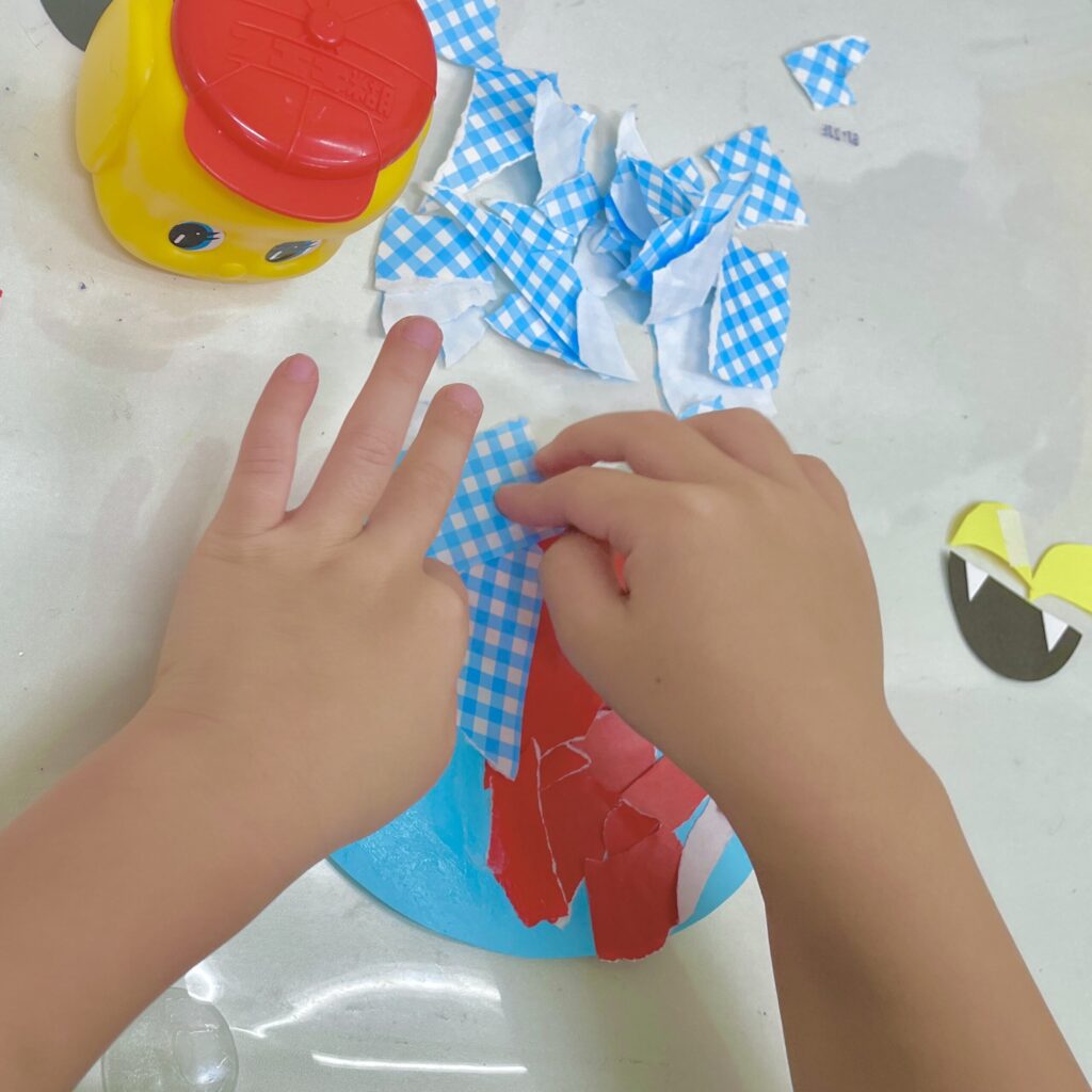 お兄さんお姉さんは難なくちぎって、自分のものが終わると一緒に製作をしていた小さいお友達にちぎり方を教えてくれる姿もみられました✨️
