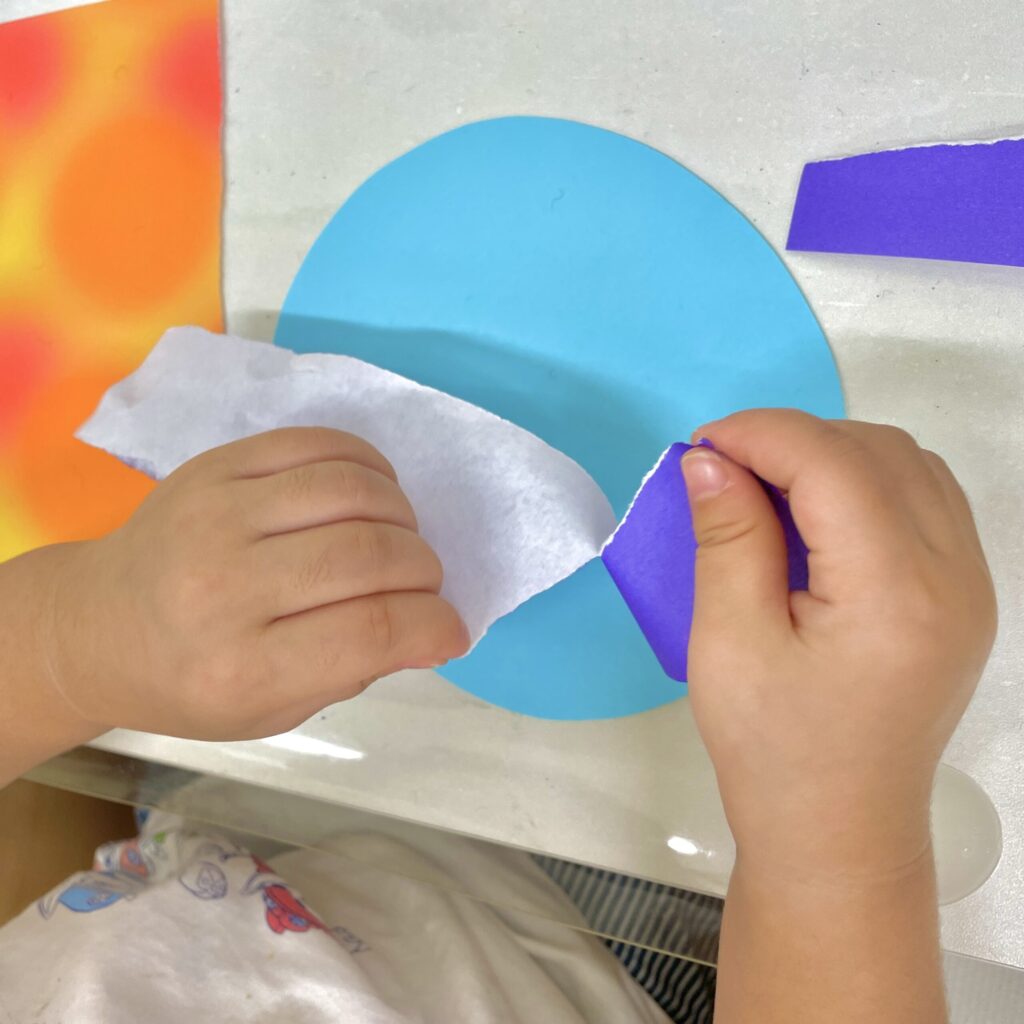 折り紙をちぎる工程では2歳さん3歳さんは少し苦戦しながらも一生懸命ちぎる姿がありました!